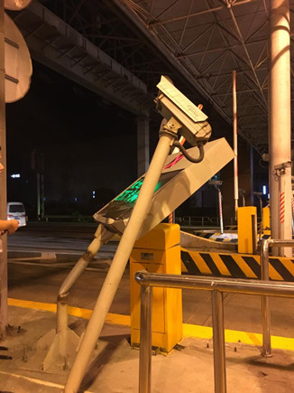 7月5日22點03分,機電設備維養中心接到臺州收費所當班班長小馬電話,稱該所ETC入口綜合顯示屏及抓拍攝像頭被一輛大客車撞彎,事故還導致出口欄桿不能正常工作,影響了出口車輛正常通行。