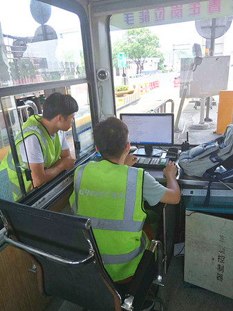 圖為工作人員對(duì)天線聯(lián)調(diào)測(cè)試 8日9日中午1點(diǎn)30左右,正是一天中最熱的時(shí)間,天線廠家?guī)еO(shè)備來(lái)到收費(fèi)所,中心人員便放棄午休時(shí)間和早已在外廣場(chǎng)待命登高車駕駛員一起,協(xié)助廠家技術(shù)人員更換離地面6米余高的RSU天線盒。由于天線盒上方?jīng)]有安裝任何遮擋設(shè)備,長(zhǎng)年日曬雨淋導(dǎo)致上方固定螺栓都出現(xiàn)生銹打滑,拆卸難度徒增,不到十分鐘,我們工作人員便濕透了全身,但大家還是咬咬牙,為盡快恢復(fù)車道正常行駛,保證車道便捷暢通而繼續(xù)埋頭苦干。在經(jīng)過(guò)近一個(gè)小時(shí)努力,終于將新的天線盒成功安裝,最后經(jīng)過(guò)聯(lián)調(diào)測(cè)試,恢復(fù)了車輛正常讀卡。 通過(guò)對(duì)新天線盒“上任”后數(shù)天觀察,發(fā)現(xiàn)該ETC車道讀卡失敗率明顯下降,車輛通過(guò)率達(dá)到了99.7%。如此一來(lái),大大提高了車輛通行效率,距打造“智慧高速”目標(biāo)又邁進(jìn)了一步。
