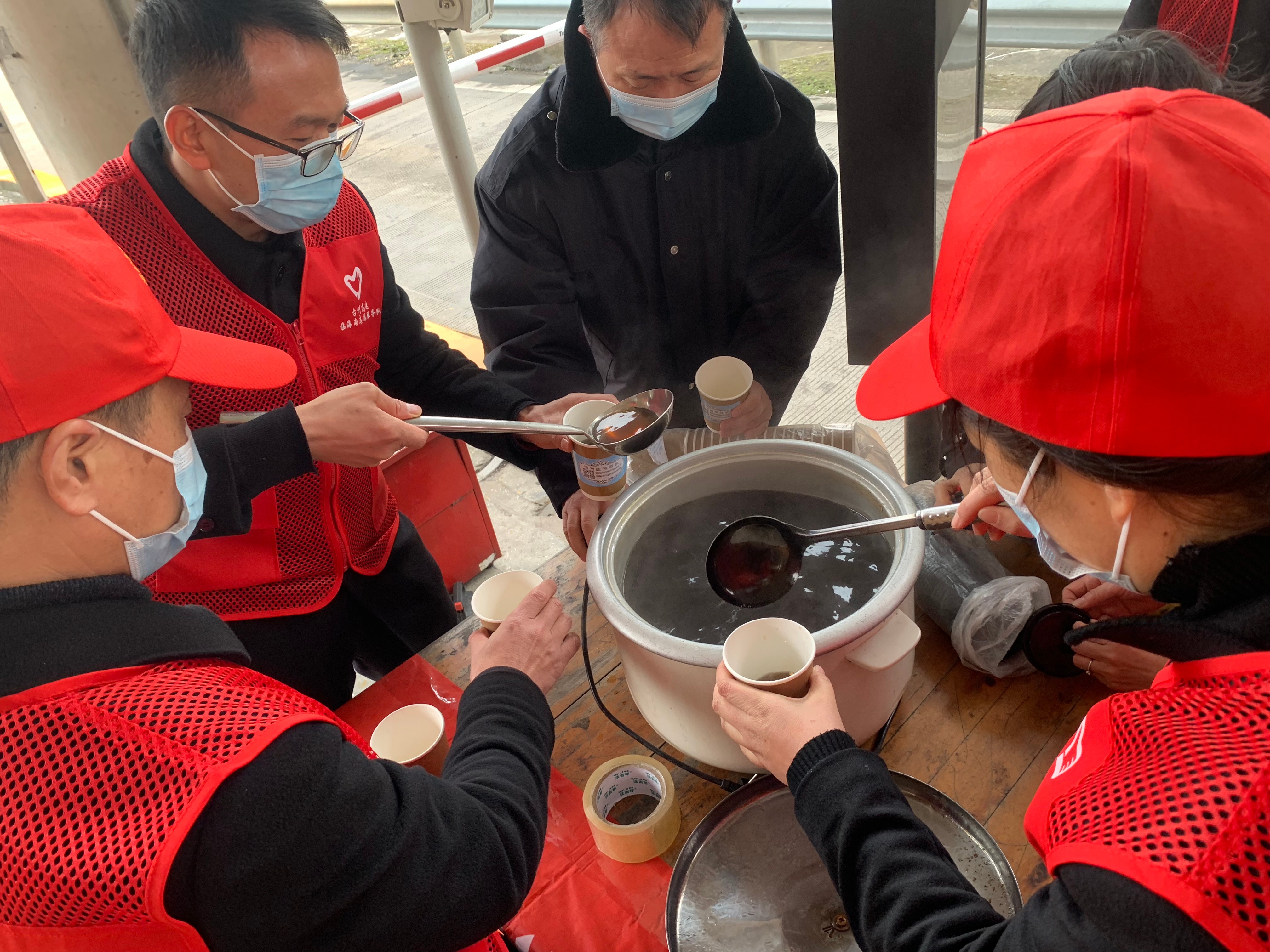 為了開展好本次活動,收費所黨支部提前一天就進行了布置,力求在做好疫情防控的同時開展好志愿服務活動。 當天上午,收費所食堂預先熬制好滿滿一大鍋紅棗姜茶,伴隨著鵝毛大雪,車道寒風凜冽,但刺骨的寒風擋不住志愿者們的似火熱情,大家身穿紅馬甲,面帶口罩,在搭好志愿服務臺后,有的負責用勺子把滾燙的茶水裝進紙杯,有的負責蓋杯蓋,有的負責傳遞,有的負責把裝好茶水的杯子送給駕駛員,現(xiàn)場有序分工。熱情的服務贏得過往司乘人員的好評。