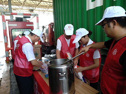 圖為志愿者給司乘人員送上綠豆湯