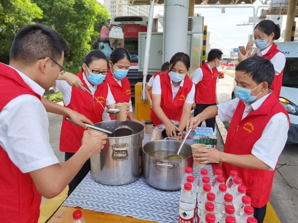 活動(dòng)開展前,大家集思廣益,準(zhǔn)備好了綠豆湯、蓮子湯、礦泉水、藿香正氣水、風(fēng)油精、人丹等防暑降溫用品。一杯綠豆湯代表一片心意,一份貼心服務(wù)送一份清涼。當(dāng)一份份清涼和關(guān)懷送至他們手中的時(shí)候,司乘人員們先是感到驚訝,隨后連忙道謝。 “趕了這么久的路,在車上的確又熱又累,一下高速就有清涼的東西送到手上,疲勞一下都煙消云散了,為你們的服務(wù)點(diǎn)贊!”一位外地貨車司機(jī)笑著說。 活動(dòng)中,志愿者在遞上消暑用品的同時(shí)還不忘向司乘宣傳夏季安全行車注意事項(xiàng)。收費(fèi)員在文明服務(wù)中也增加“請(qǐng)注意防暑降溫”、“請(qǐng)不要疲勞駕駛”等文明服務(wù)提醒用語(yǔ)。收費(fèi)所做的不僅僅是收費(fèi),更是用心去了解司乘人員的需求,用真誠(chéng)傳遞理念,司機(jī)臉上的笑容就是最好的回報(bào)。