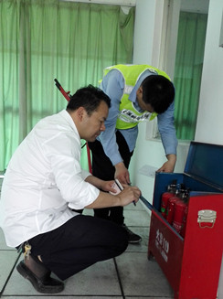 圖為檢查現(xiàn)場 該所副所長應(yīng)錦清帶領(lǐng)隊員仔細(xì)檢查了南北配電房的機(jī)電設(shè)施,隨后對管理房的干粉滅火器、隧道內(nèi)的泡沫滅火器,配電房、中控室的二氧化碳滅火器進(jìn)行逐一檢查,查看每個滅火器的壓力值、出氣管有無彎折、堵塞、損傷,壓把和閥體等金屬件有無變形和銹蝕,是否還在使用年限之內(nèi)等等,并做好相應(yīng)的檢查記錄。 陳智慧