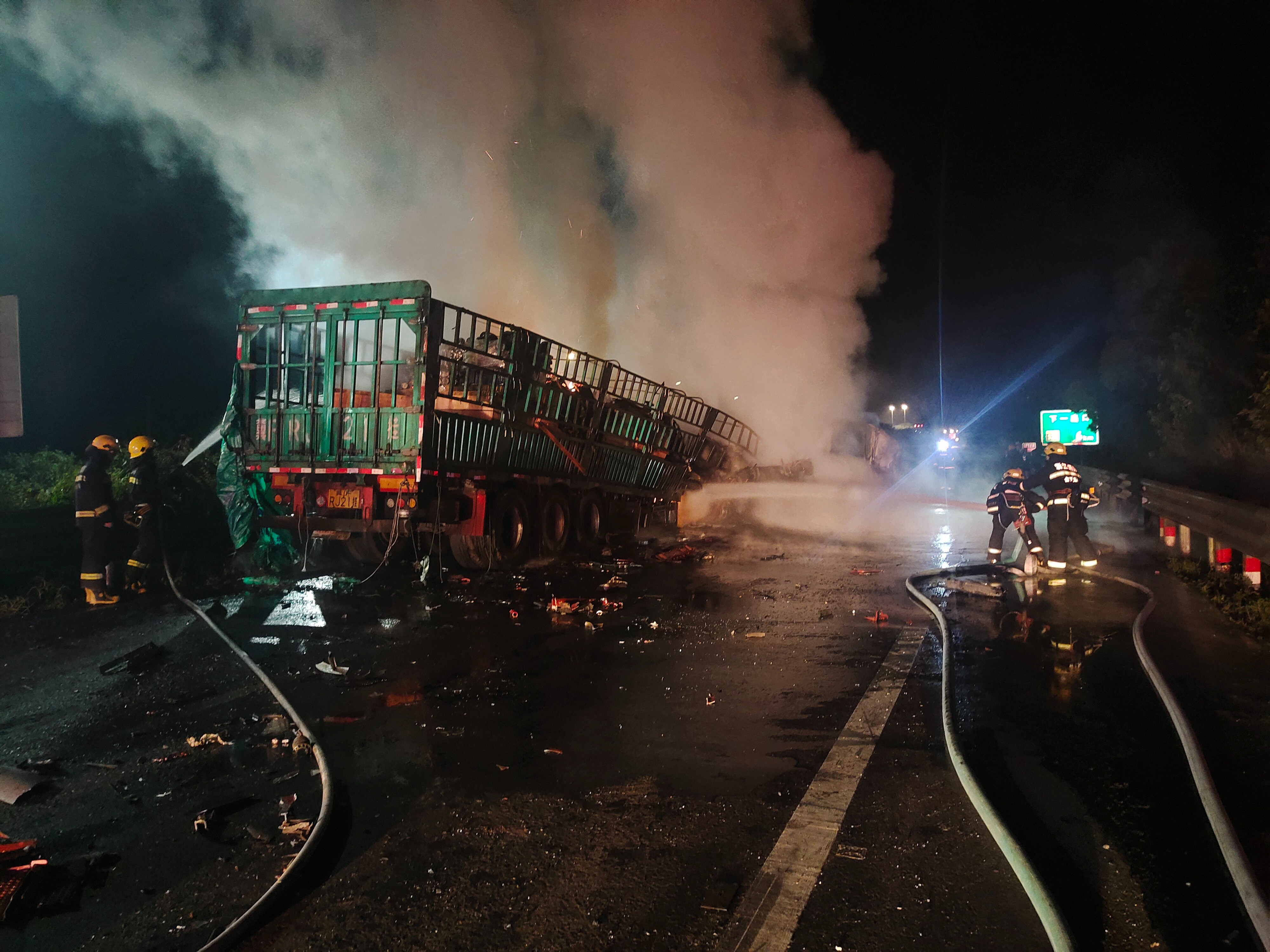 黃土嶺隧道附近兩車追尾起火 |