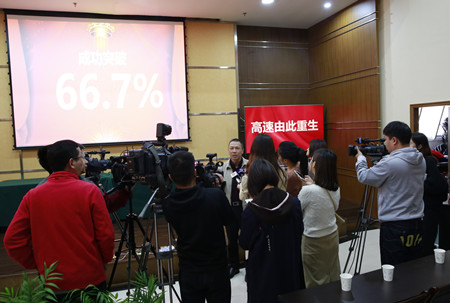 圖為見證領(lǐng)導(dǎo)和員工為激動(dòng)人心的歷史時(shí)刻而鼓掌