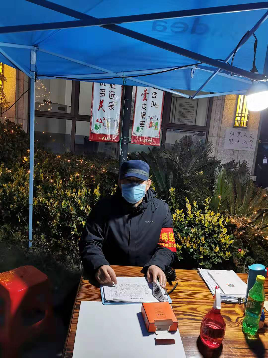 黨員丁聰,積極參與泰和苑小區(qū)的卡點(diǎn)測(cè)溫志愿服務(wù);