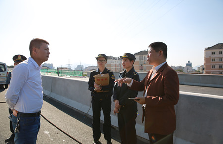 10月27日,黃巖區(qū)公路局到內(nèi)環(huán)路(黃巖段)開展涉路施工監(jiān)管。市政公司相關(guān)負(fù)責(zé)人陪同檢查。