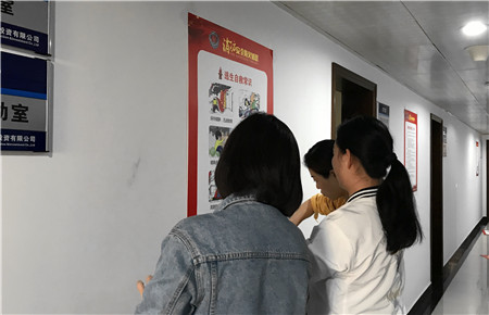 市政公司走廊上,員工們經(jīng)過消防安全宣傳畫報前討論了起來。今年的消防安全月活動,市政公司走廊上平添了一道亮麗的“風(fēng)景線”,很多員工經(jīng)過的時候,抽工作上下班的空檔認(rèn)真地學(xué)習(xí)了消防安全知識。